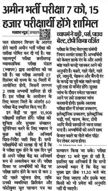 CG Vyapam Amin Patwari Admit Card 2025: परीक्षा दिन महत्वपूर्ण निर्देश