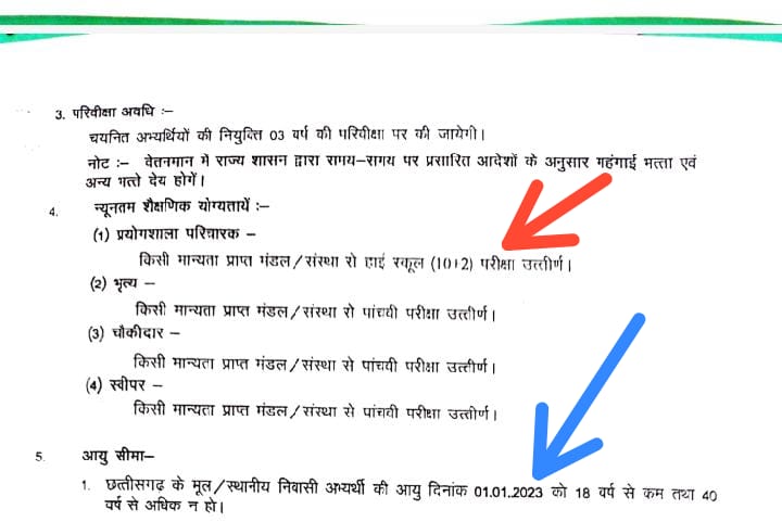 - 2. छत्तीसगढ़ के मूल/स्थानीय निवासी अभ्यर्थियों को अधिकतम आयु में शासन द्वारा निर्धारित छूट दी जाएगी।